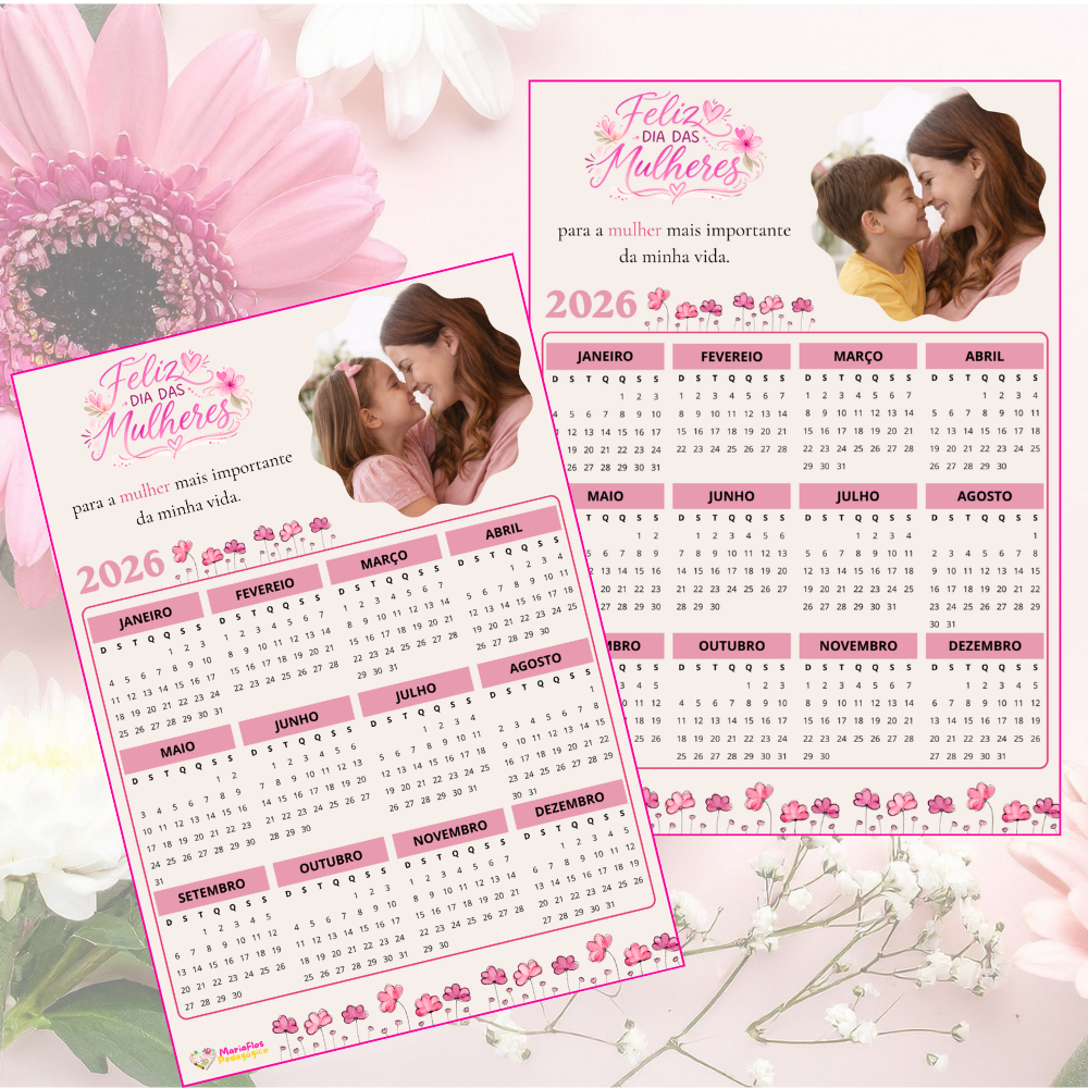 Calendário Editável 2026 Dia das Mulheres – Para a Mulher Mais Importante da Minha Vida