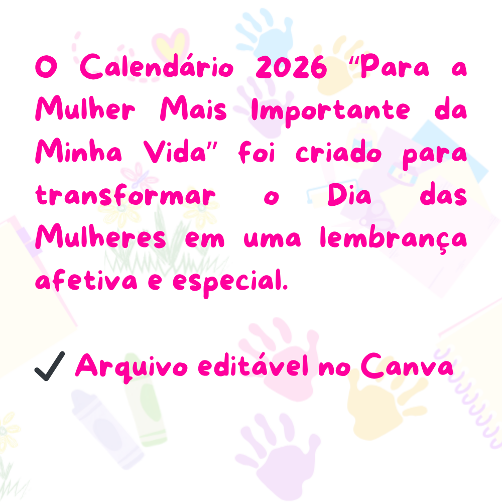 calendário editável 2026 dia das mulheres – para a mulher mais importante da minha vidaCalendário Editável 2026 Dia das Mulheres – Para a Mulher Mais Importante da Minha Vida